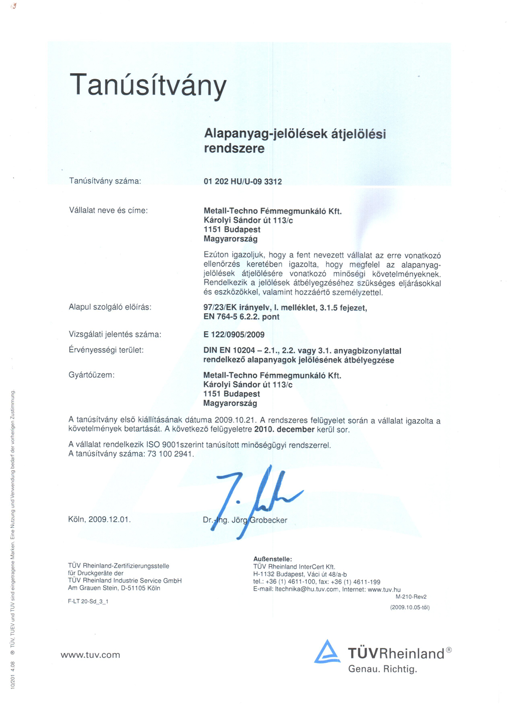 DIN18800-7 hegesztéstechnológiai tanusítvány.